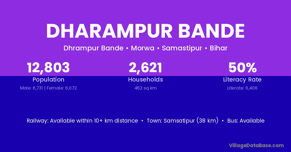 Samsatipur (38 km) is the nearest town to Dharampur Bande village for major economic activities and is located approximately 38 km away.