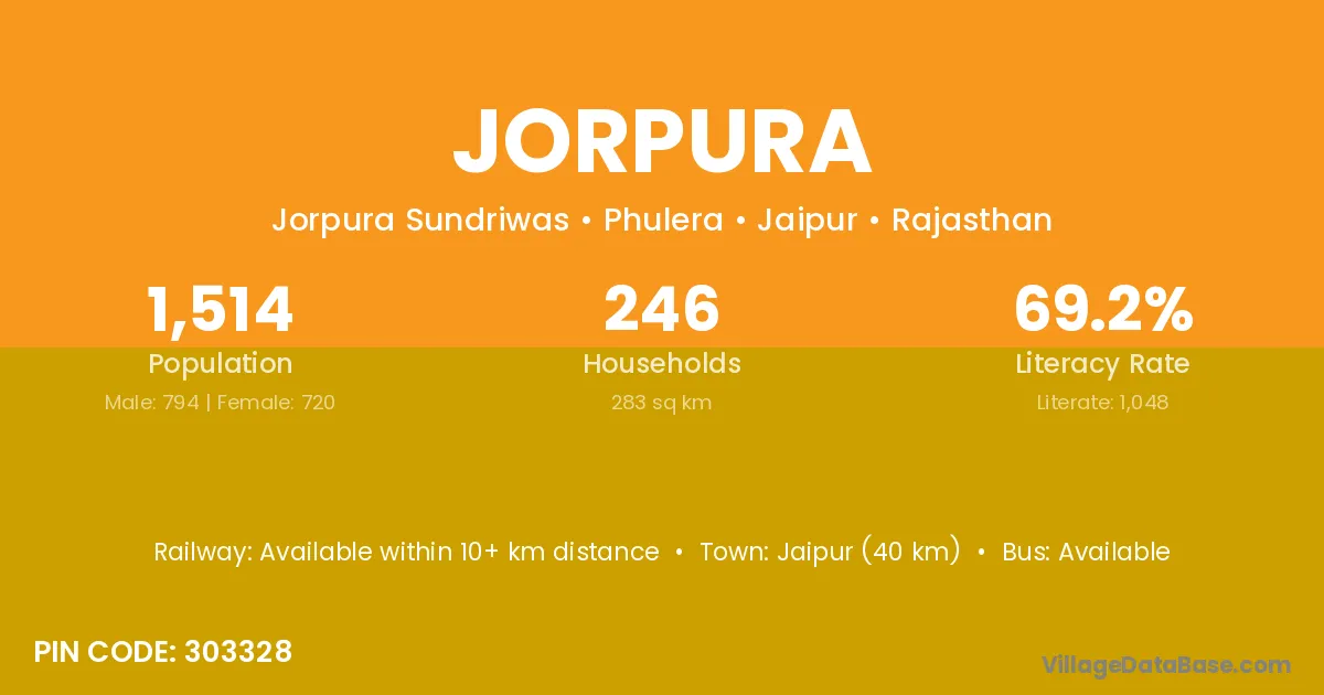Jorpura village has a total population of 5,349 people, of which 2,796 are males and 2,553 are females.