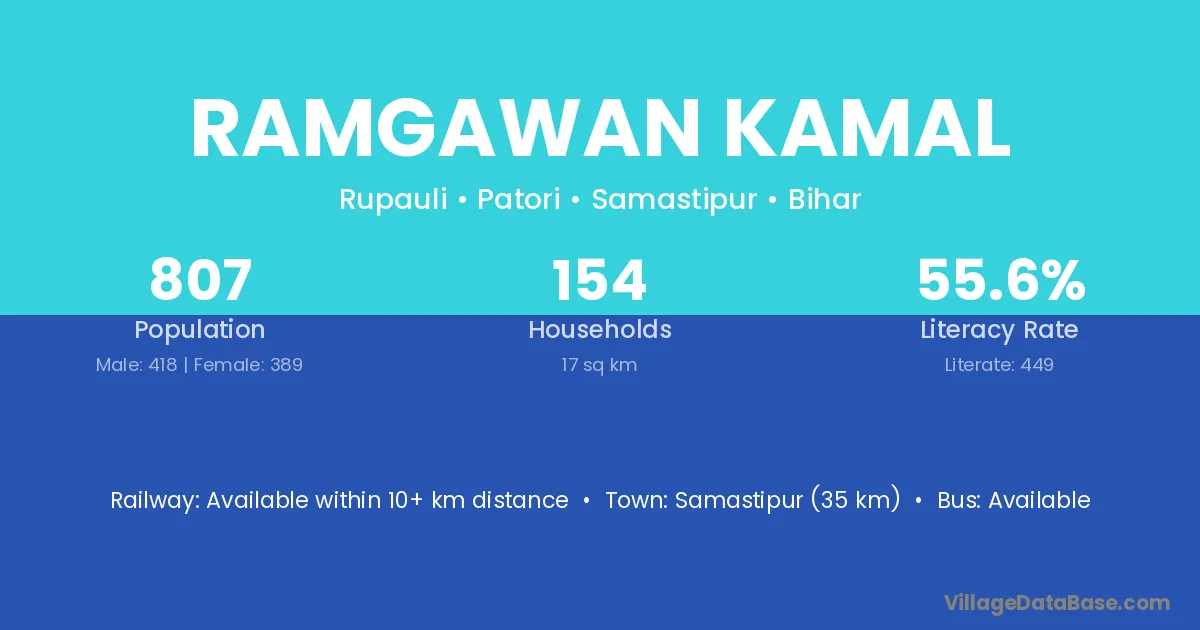 Ramgawan Kamal village has a total population of 807 people, of which 418 are males and 389 are females.