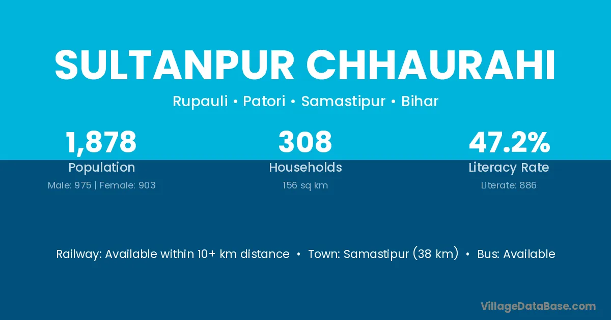 Sultanpur Chhaurahi village has a total population of 1,878 people, of which 975 are males and 903 are females.