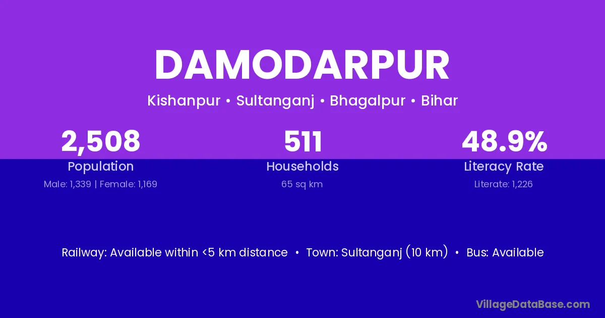 Rosera (2 km) is the nearest town to Damodarpur village for major economic activities and is located approximately 2 km away.