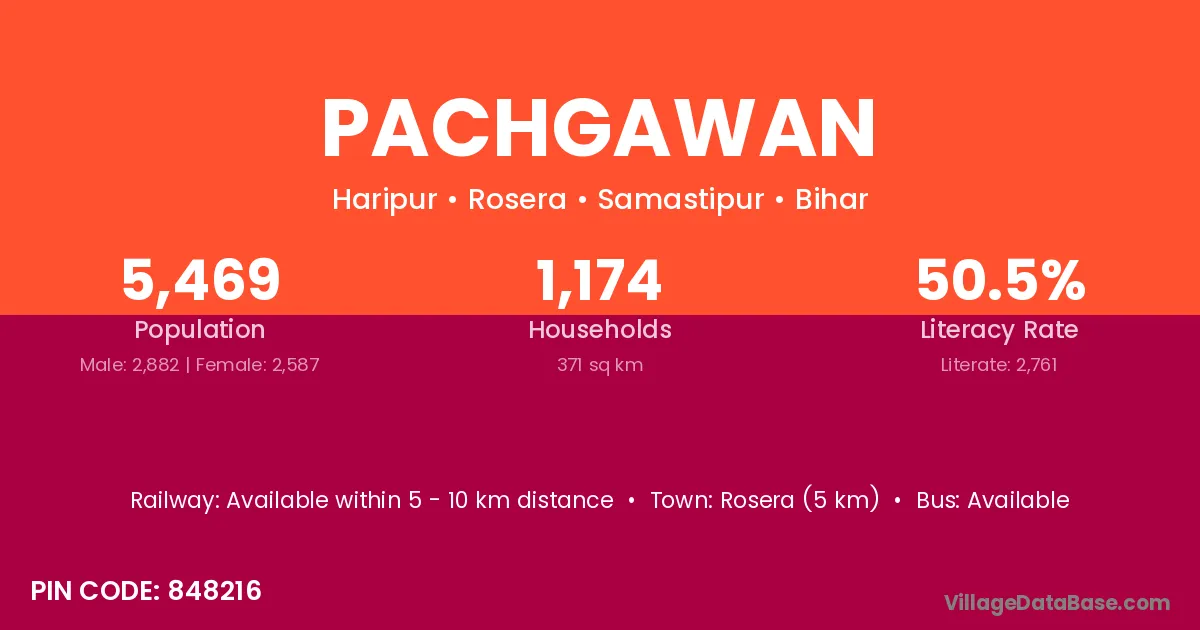 Rosera (5 km) is the nearest town to Pachgawan village for major economic activities and is located approximately 5 km away.