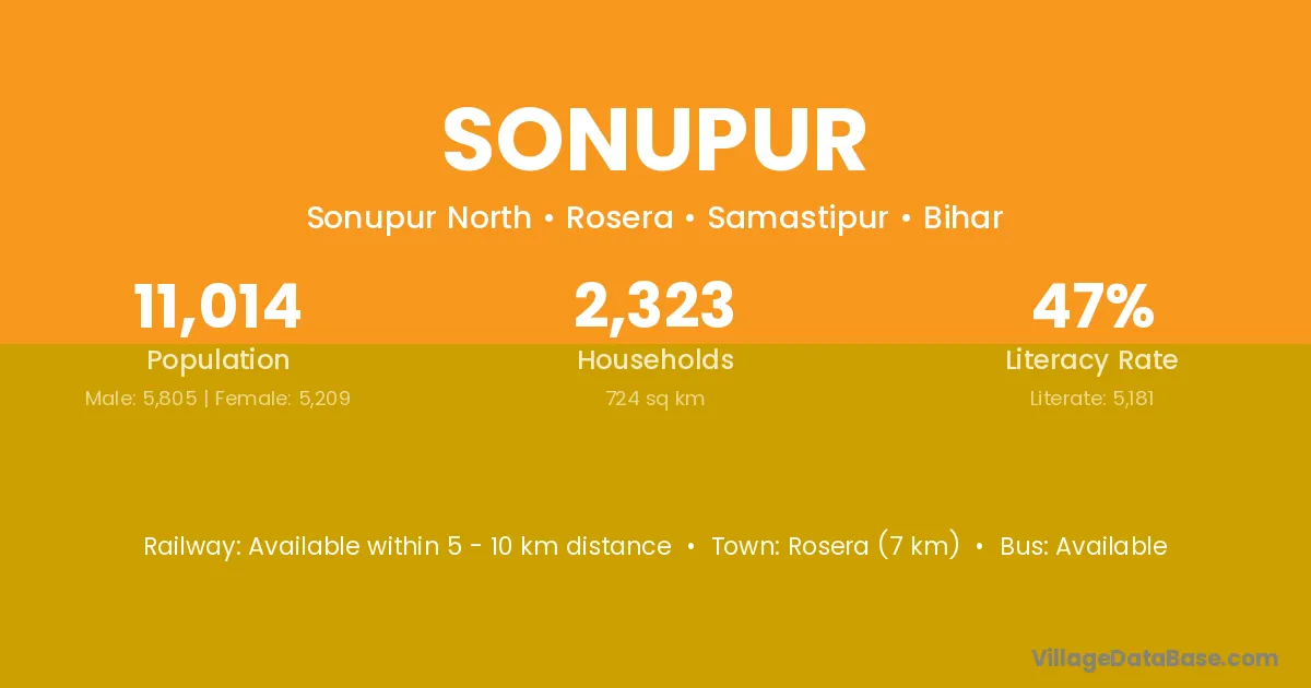 Rosera (7 km) is the nearest town to Sonupur village for major economic activities and is located approximately 7 km away.