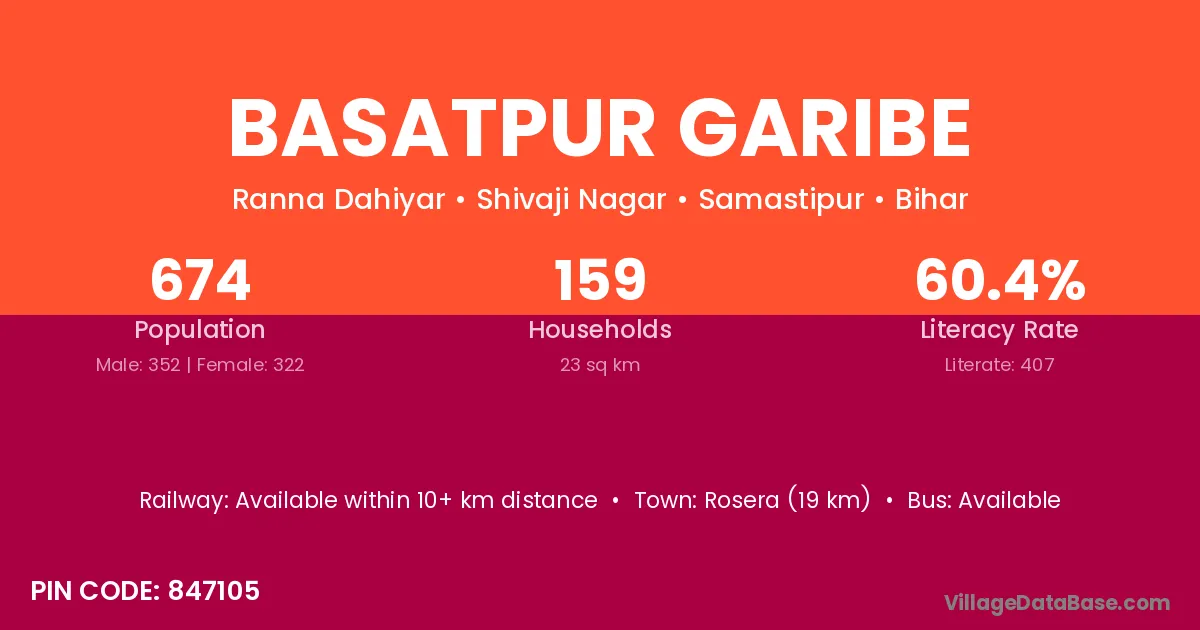 Rosera (19 km) is the nearest town to Basatpur Garibe village for major economic activities and is located approximately 19 km away.