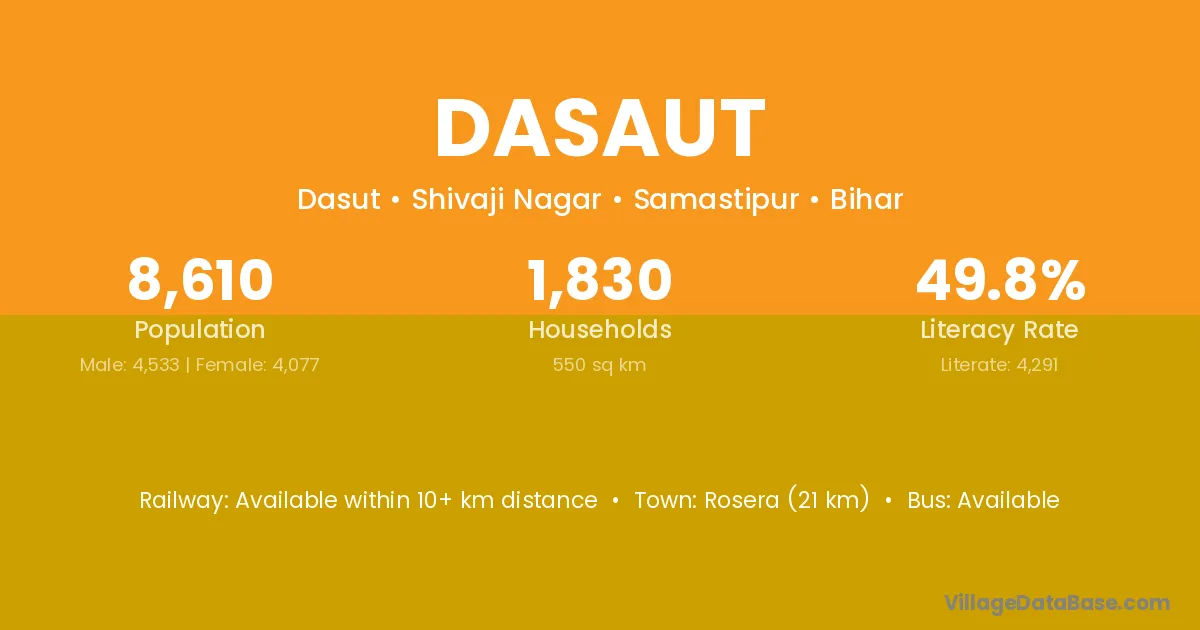 Dasaut village has a total population of 8,610 people, of which 4,533 are males and 4,077 are females.