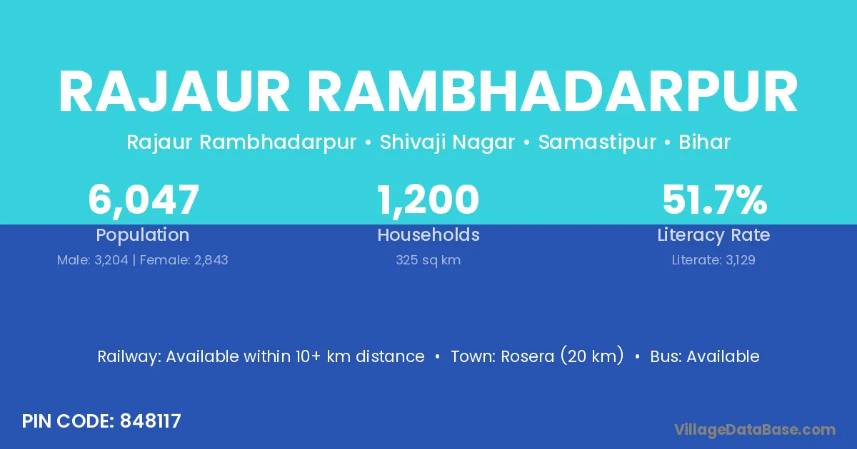 Rajaur Rambhadarpur village has a total population of 6,047 people, of which 3,204 are males and 2,843 are females.