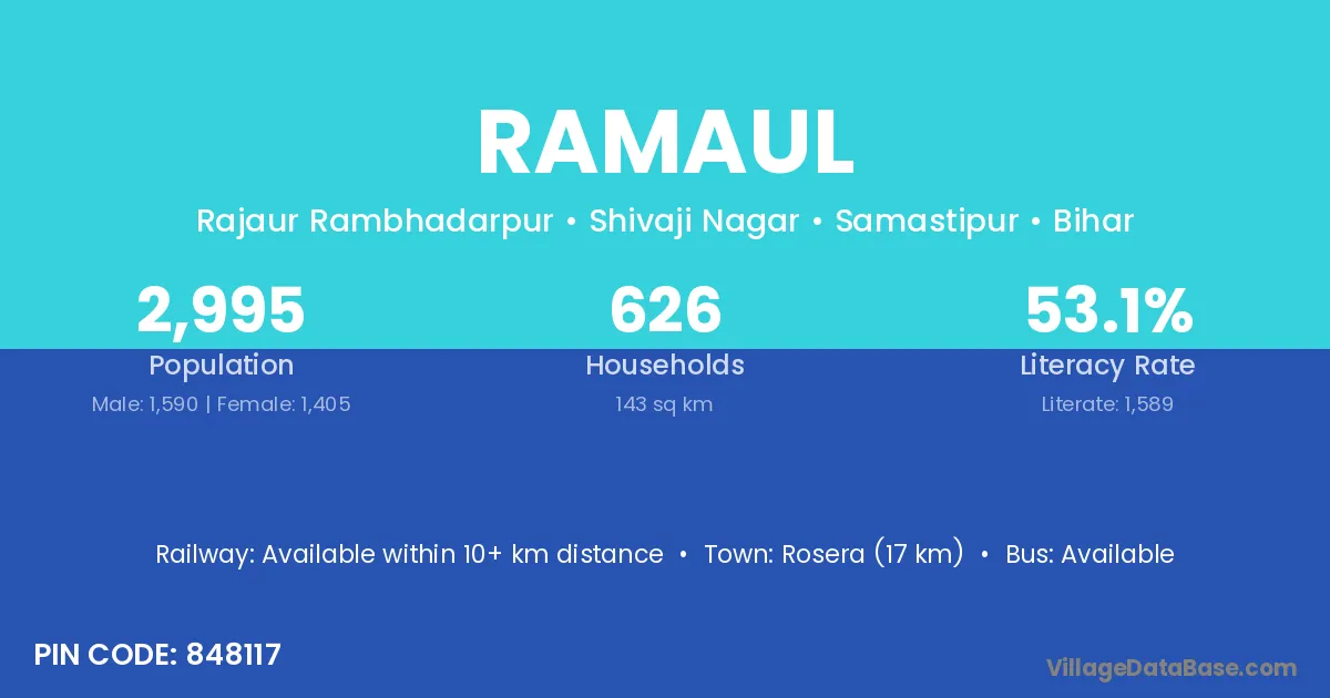 Rosera (17 km) is the nearest town to Ramaul village for major economic activities and is located approximately 17 km away.