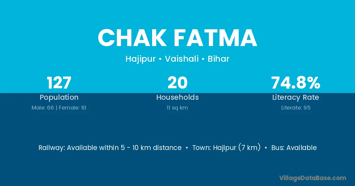 Samastipur (30 km) is the nearest town to Chak Fatma village for major economic activities and is located approximately 30 km away.