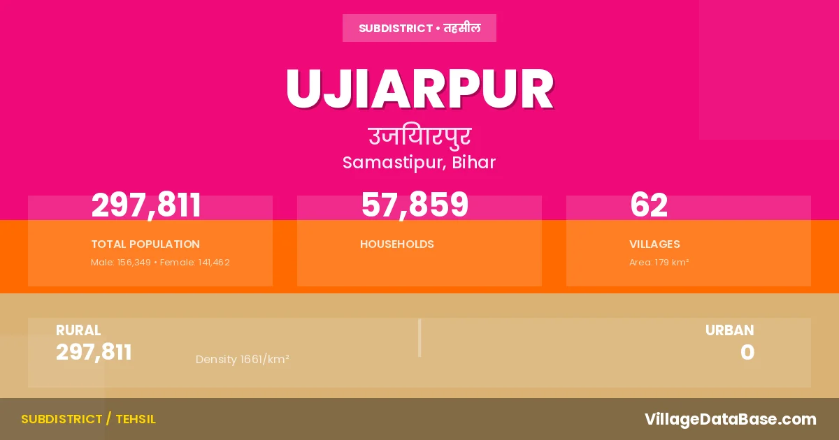 Ujiarpur is a town and Subdivision in the Samastipur district of the Bihar. In India, a Subdivision is a subdivision of a district responsible for the administration and revenue collection of a specific area within the district. Subdivisions play a crucial role in the local governance structure, contributing significantly to the development and administration of their communities.