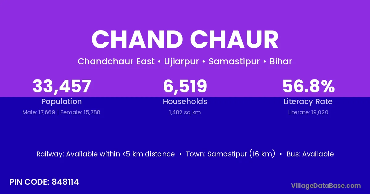 Samastipur (16 km) is the nearest town to Chand Chaur village for major economic activities and is located approximately 16 km away.