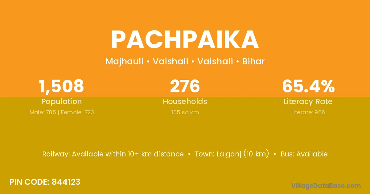 Samastipur (15 km) is the nearest town to Pachpaika village for major economic activities and is located approximately 15 km away.
