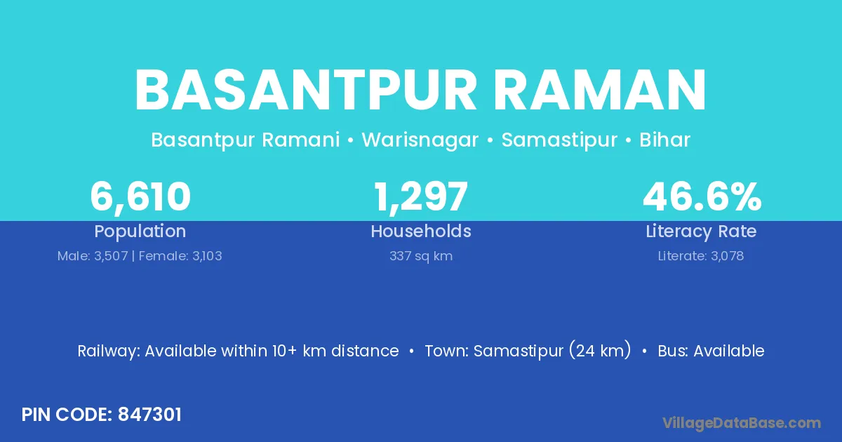 Samastipur (24 km) is the nearest town to Basantpur Raman village for major economic activities and is located approximately 24 km away.