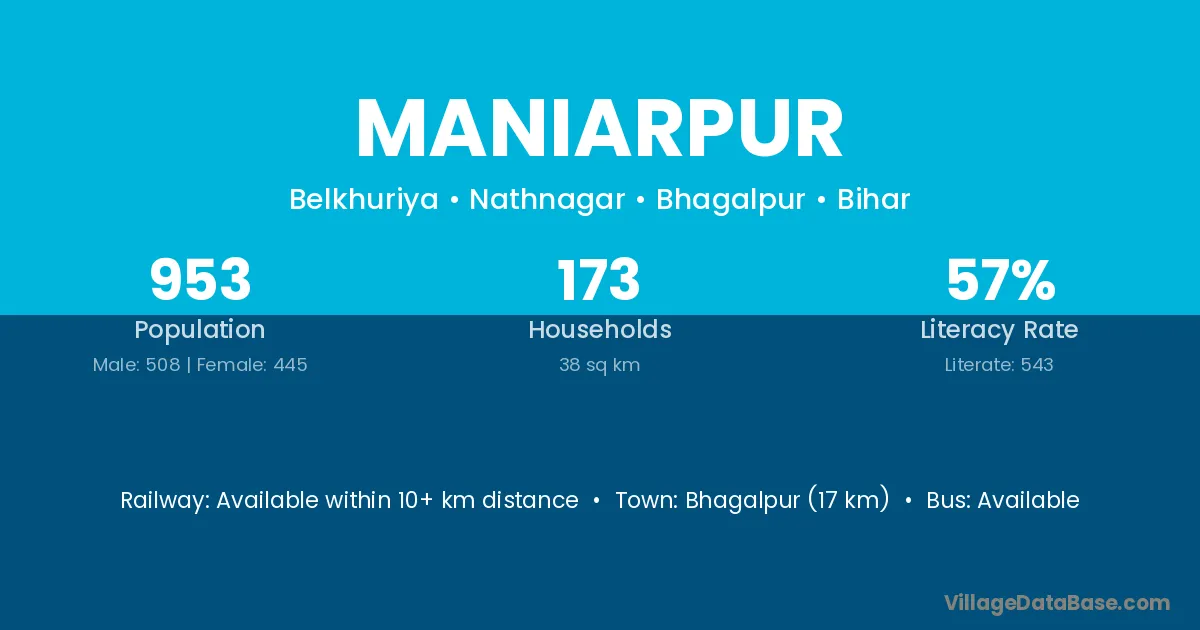 Samastipur (14 km) is the nearest town to Maniarpur village for major economic activities and is located approximately 14 km away.