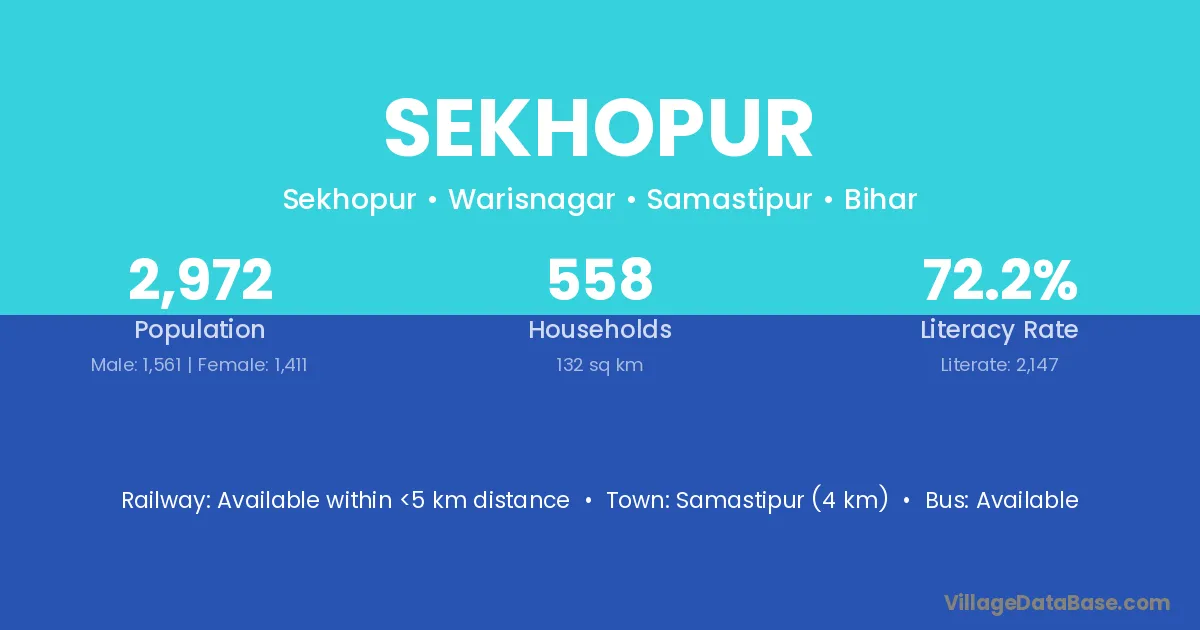 Samastipur (4 km) is the nearest town to Sekhopur village for major economic activities and is located approximately 4 km away.