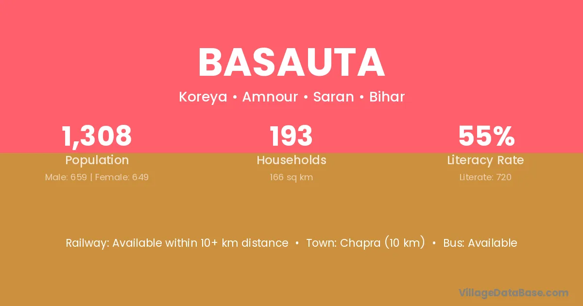 Chapra (10 km) is the nearest town to Basauta village for major economic activities and is located approximately 10 km away.