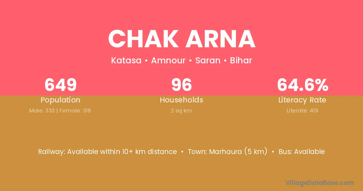 Marhaura (5 km) is the nearest town to Chak Arna village for major economic activities and is located approximately 5 km away.