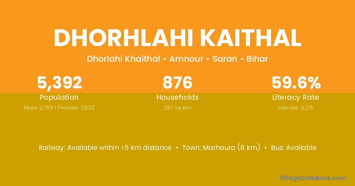 Marhaura (8 km) is the nearest town to Dhorhlahi Kaithal village for major economic activities and is located approximately 8 km away.