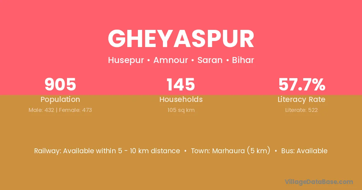 Marhaura (5 km) is the nearest town to Gheyaspur village for major economic activities and is located approximately 5 km away.
