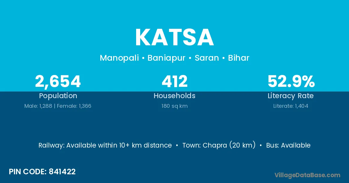 Marhaura (25 km) is the nearest town to Katsa village for major economic activities and is located approximately 25 km away.