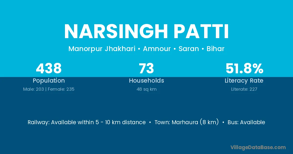Marhaura (8 km) is the nearest town to Narsingh Patti village for major economic activities and is located approximately 8 km away.