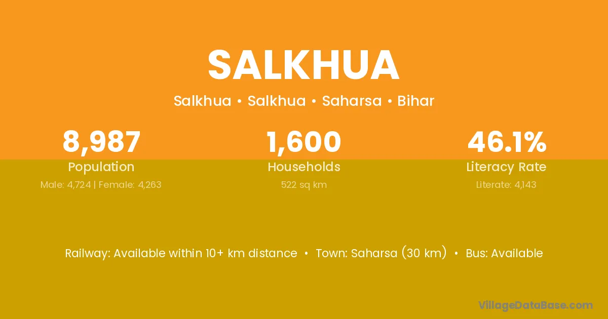 Marhaura (9 km) is the nearest town to Salkhua village for major economic activities and is located approximately 9 km away.