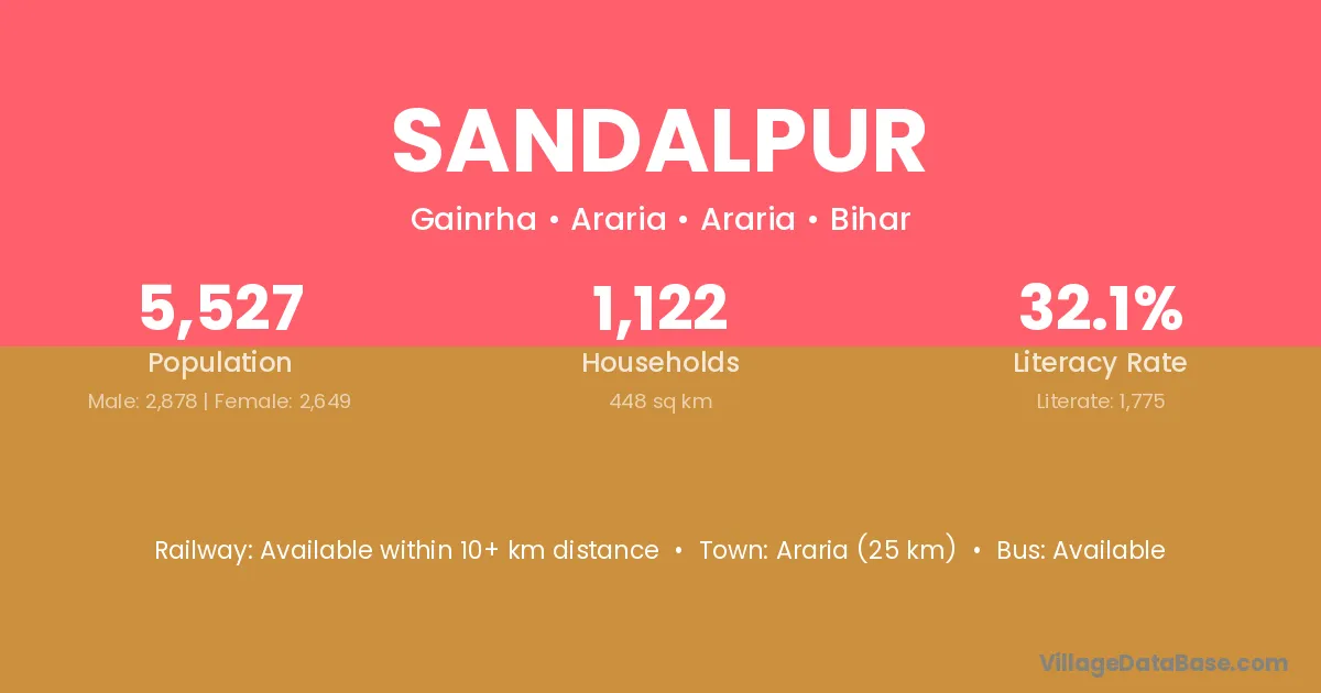 Chapra (25 km) is the nearest town to Sandalpur village for major economic activities and is located approximately 25 km away.
