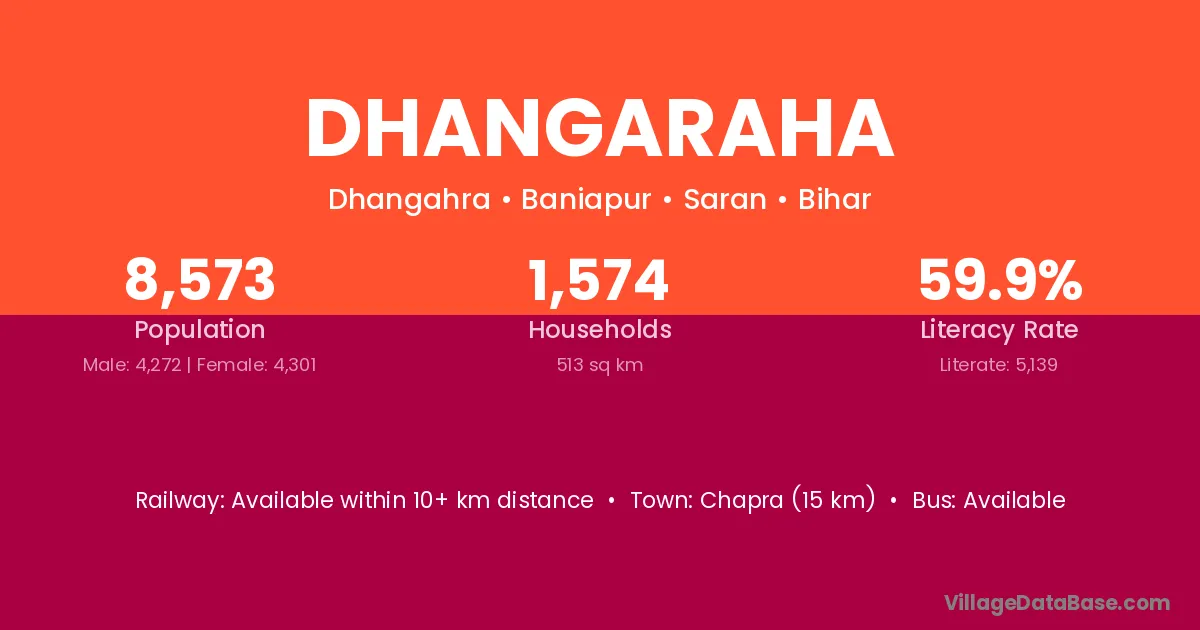 Chapra (15 km) is the nearest town to Dhangaraha village for major economic activities and is located approximately 15 km away.
