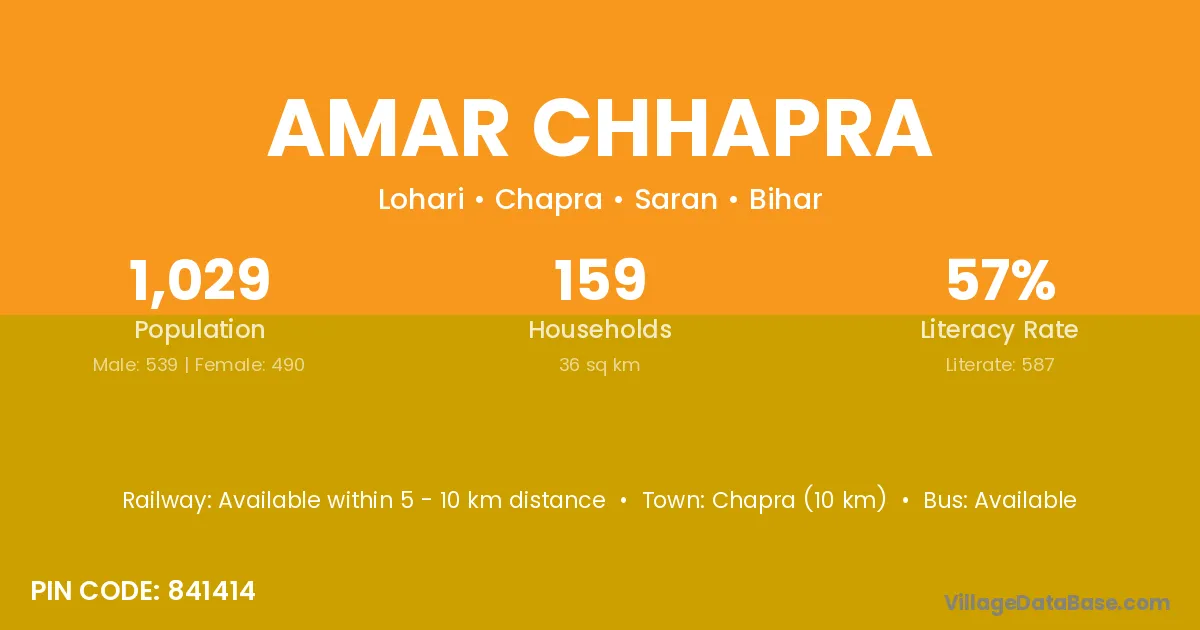 Chapra (10 km) is the nearest town to Amar Chhapra village for major economic activities and is located approximately 10 km away.