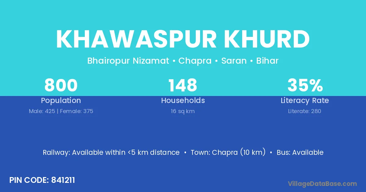 Chapra (10 km) is the nearest town to Khawaspur Khurd village for major economic activities and is located approximately 10 km away.