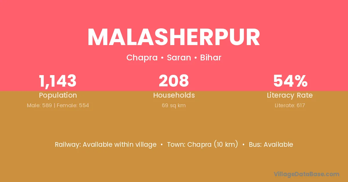 Chapra (10 km) is the nearest town to Malasherpur village for major economic activities and is located approximately 10 km away.