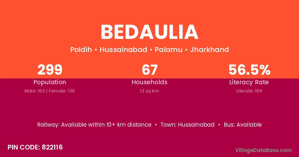 Chapra (40 km) is the nearest town to Bedaulia village for major economic activities and is located approximately 40 km away.