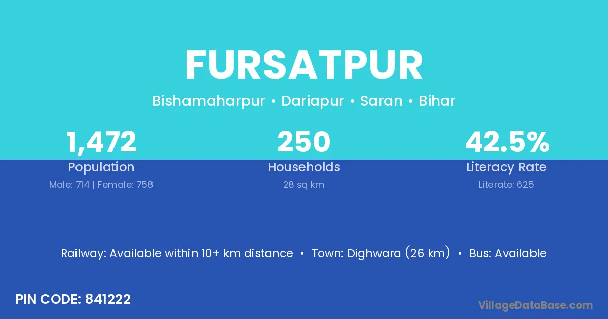 Dighwara (26 km) is the nearest town to Fursatpur village for major economic activities and is located approximately 26 km away.