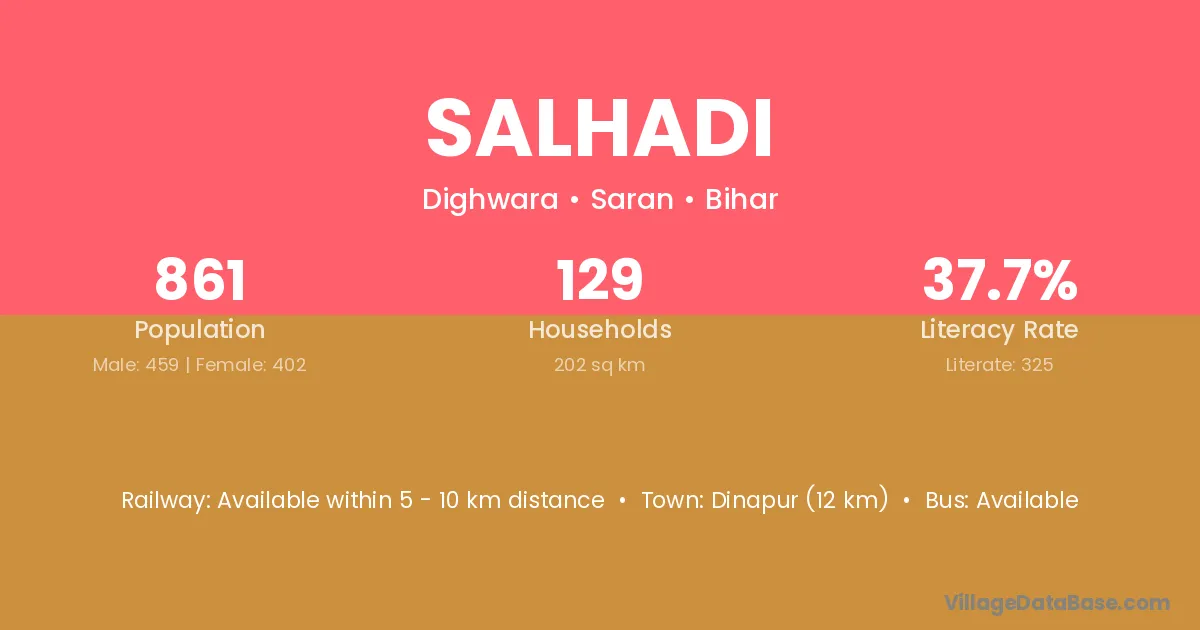 Dinapur (12 km) is the nearest town to Salhadi village for major economic activities and is located approximately 12 km away.