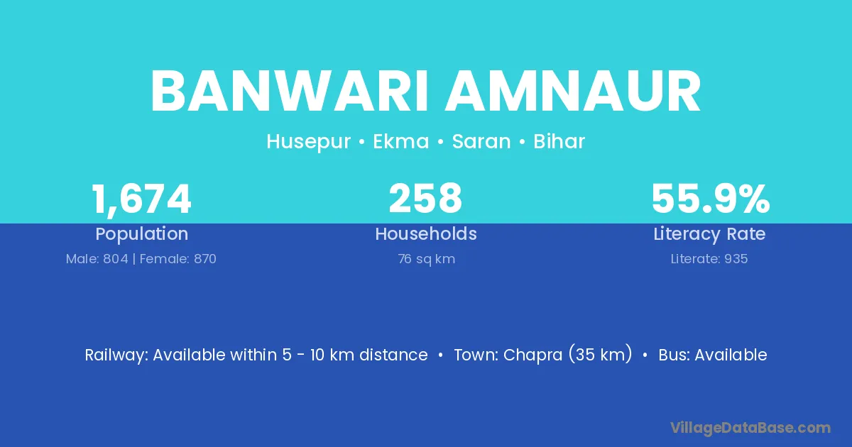 Chapra (35 km) is the nearest town to Banwari Amnaur village for major economic activities and is located approximately 35 km away.