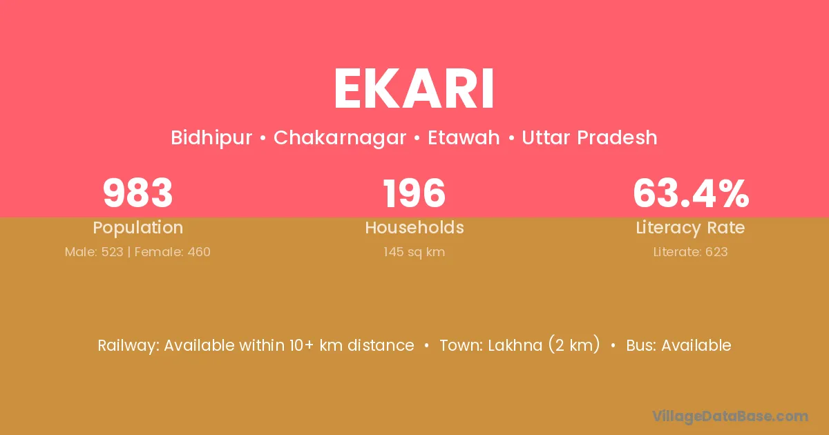 The literacy rate of Ekari village is 60.37%. Male literacy stands at 69.62% and female literacy at 51.14%.
