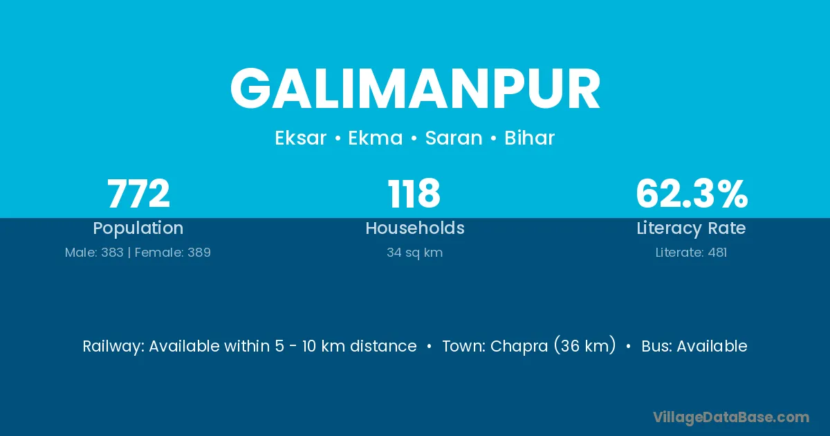 Chapra (36 km) is the nearest town to Galimanpur village for major economic activities and is located approximately 36 km away.