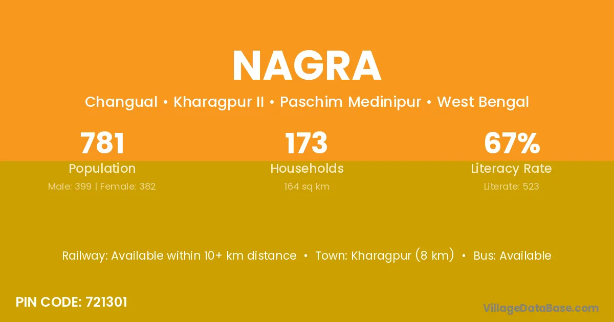 Chapra (34 km) is the nearest town to Nagra village for major economic activities and is located approximately 34 km away.