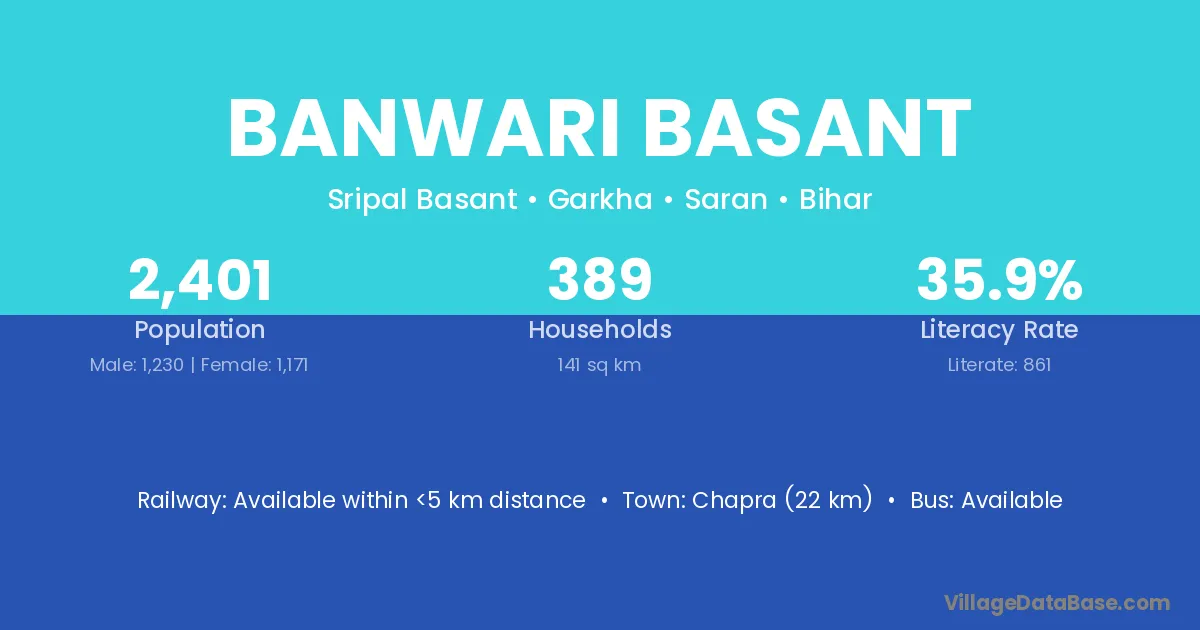 Chapra (22 km) is the nearest town to Banwari Basant village for major economic activities and is located approximately 22 km away.