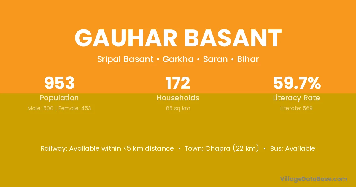 Chapra (22 km) is the nearest town to Gauhar Basant village for major economic activities and is located approximately 22 km away.