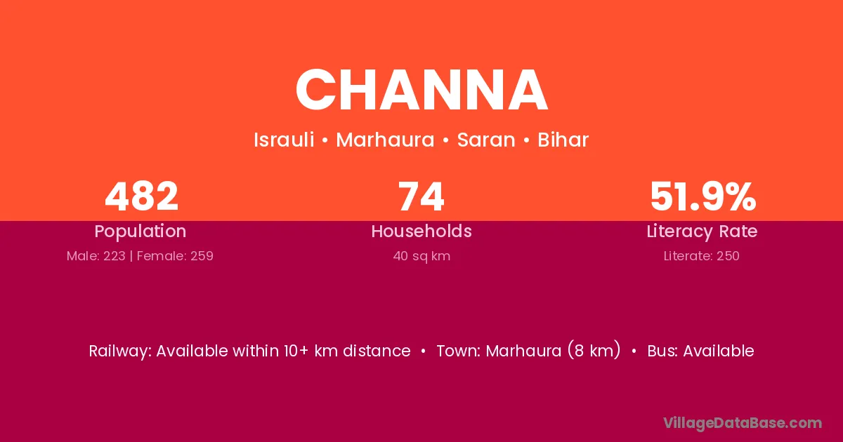 Marhaura (8 km) is the nearest town to Channa village for major economic activities and is located approximately 8 km away.