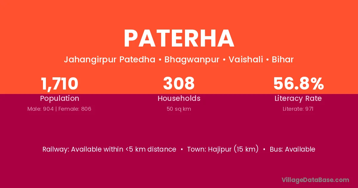 Chapra (10 km) is the nearest town to Paterha village for major economic activities and is located approximately 10 km away.