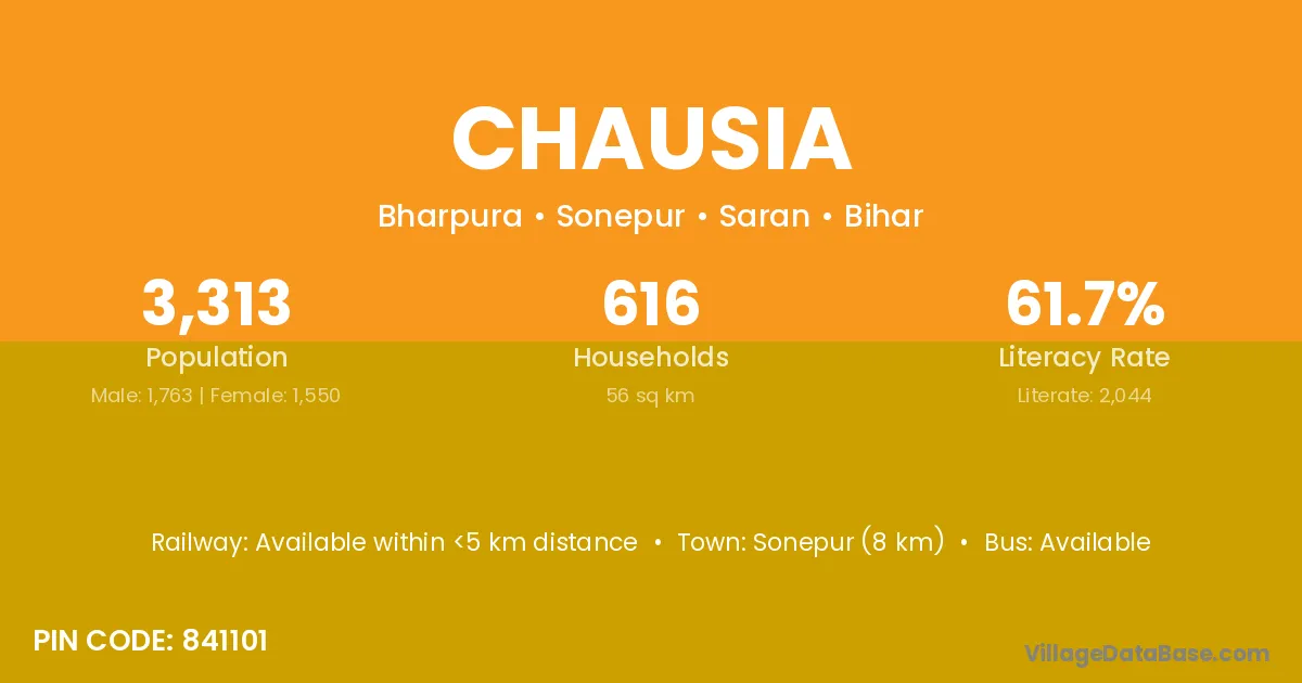 Sonepur (8 km) is the nearest town to Chausia village for major economic activities and is located approximately 8 km away.