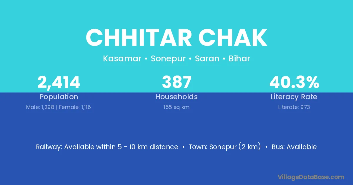 Sonepur (2 km) is the nearest town to Chhitar Chak village for major economic activities and is located approximately 2 km away.
