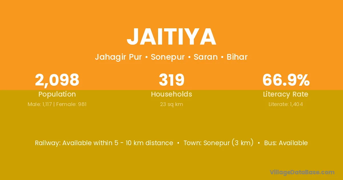 Sonepur (3 km) is the nearest town to Jaitiya village for major economic activities and is located approximately 3 km away.