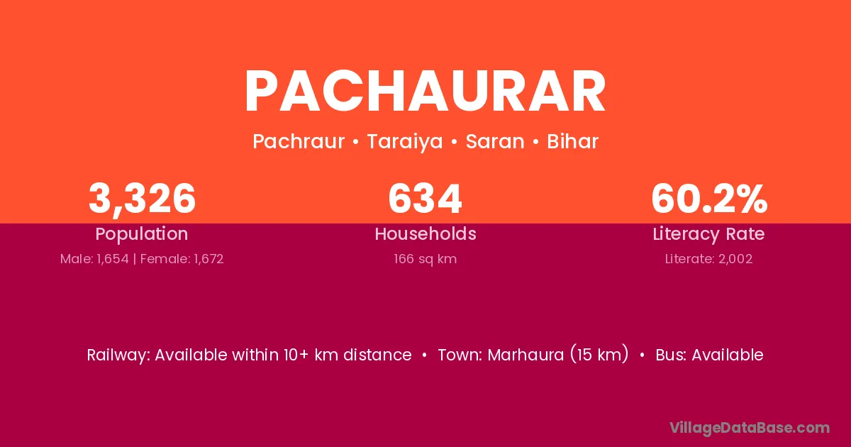 Marhaura (15 km) is the nearest town to Pachaurar village for major economic activities and is located approximately 15 km away.