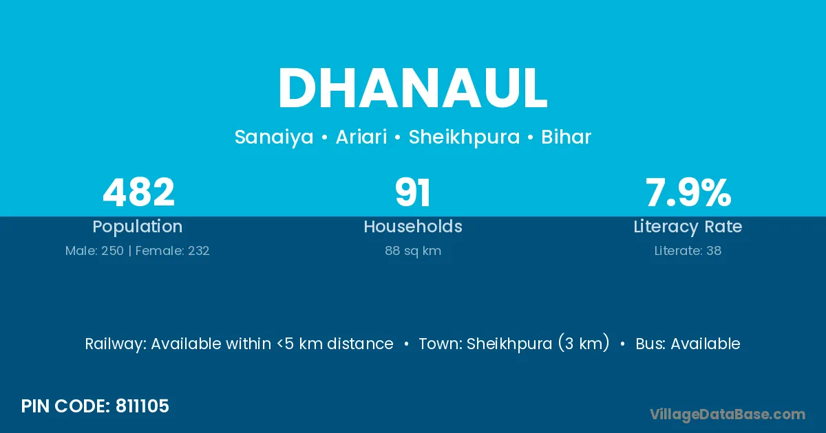 Sheikhpura (3 km) is the nearest town to Dhanaul village for major economic activities and is located approximately 3 km away.