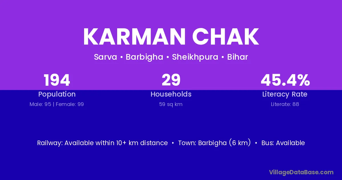 Barbigha (6 km) is the nearest town to Karman Chak village for major economic activities and is located approximately 6 km away.