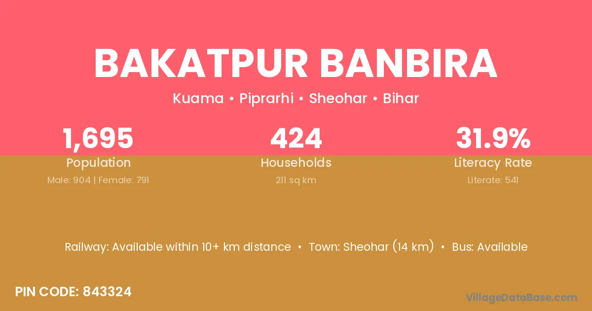 Bakatpur Banbira village has a total population of 1,695 people, of which 904 are males and 791 are females.