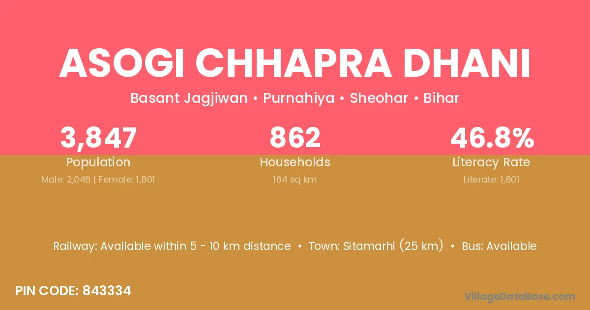 There are approximately 862 households in Asogi Chhapra Dhani village.