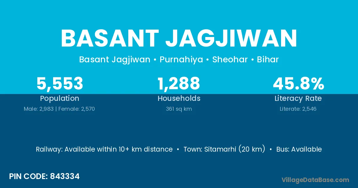 Sitamarhi (20 km) is the nearest town to Basant Jagjiwan village for major economic activities and is located approximately 20 km away.